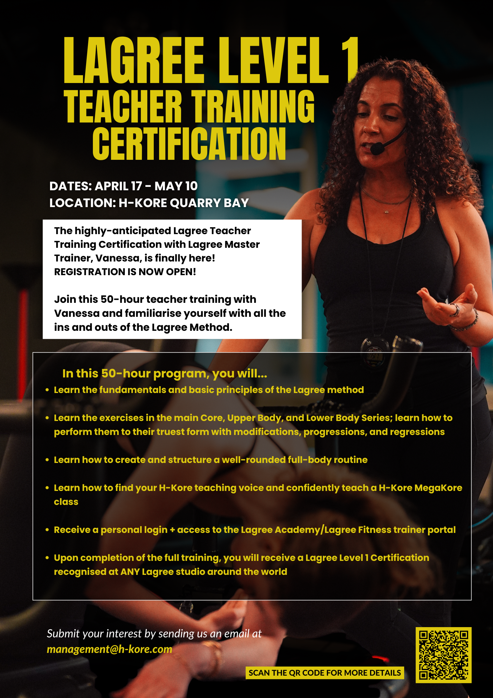 Lagree Level 1 Teacher Training Certification at H-Kore with Vanessa (APRIL 2026)